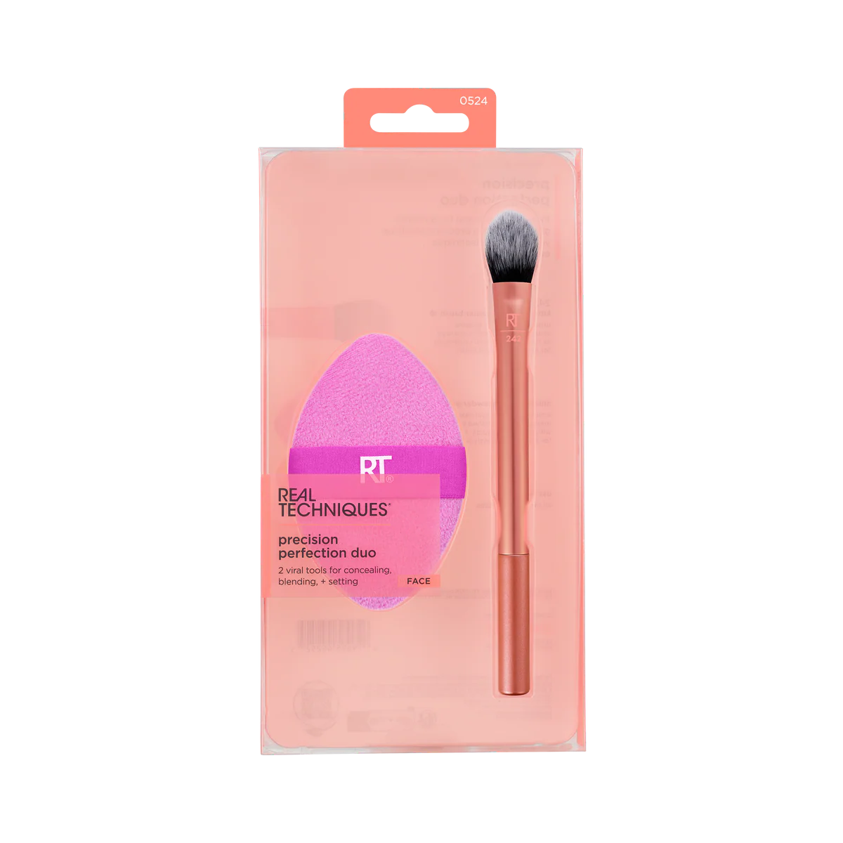 В наборе Real Techniques Precision Perfection Duo — два бестселлера бренда для коррекции, растушевки и фиксации макияжа.