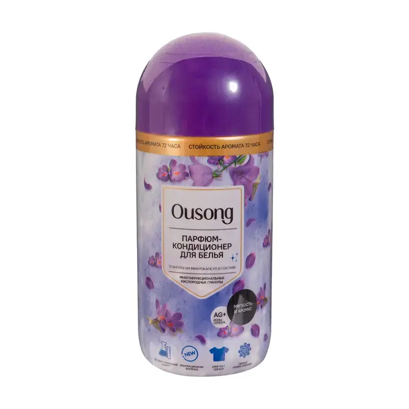 Кондиционер для белья парфюмированный Ousong с ароматом лаванды представляет собой инновационный продукт, предназначенный для повышения качества стирки и ухода за различными типами тканей. Основной компонент — ароматические гранулы, которые имеют множество преимуществ для бытового использования. Их основная функция — смягчать ткани, делая их более приятными на ощупь и устраняя статическое электричество, что особенно актуально при использовании синтетических материалов и деликатных тканей.
