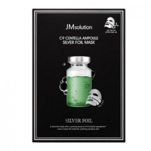 JMSolution C9 Centella Ampoule Silver Foil Mask — ампульная тканевая маска с концентрированным экстрактом центеллы азиатской (CICA) и серебряной фольгой, предназначенная для глубокой гидратации, успокоения, восстановления и укрепления защитного барьера кожи.