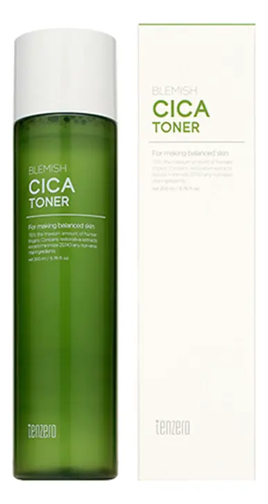 Смягчающий тонер TENZERO Blemish Cica Toner рекомендован для ежедневного ухода за любым типом кожи, особенно чувствительным. Жидкая текстура продукта быстро впитывается, нормализуя баланс эпидермиса и устраняя дискомфорт и стянутость после процедуры умывания. В состав средства включены экстракты центеллы азиатской, ромашки гиацинта, томата, гидролат лаванды, масла оливы и розмарина.